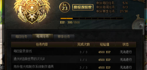 3 、每个任务完成后给的经验值也不一样 ,每周任务和赛季任务 ,